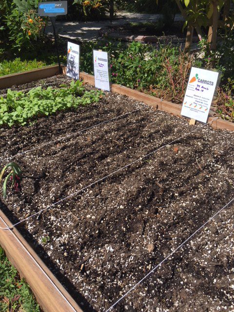 We started the garden signs with fact sheets for the different fruits and vegetables we are growing. They give an overview on what nutrients can be found in the item growing, suggestions on how to eat it, and the plant date/harvest area. We also set up the “chalkboard” wall where lessons and watering information will be posted and easily adjusted.